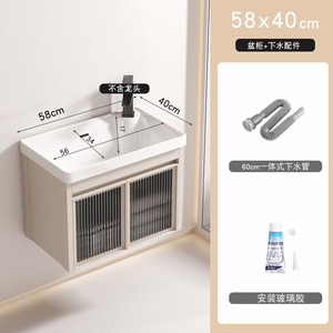 Changhong アルミキャビネット + 洗面器 + 排水 (標準構成) - 58*40cm (片面左右蛇口の売れ筋モデル)