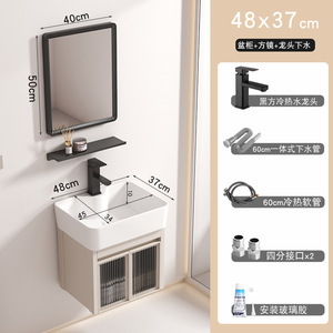 長虹アルミキャビネット + 洗面器 + 排水口 (標準構成) - 48*37cm (小型マンション向けの経済的なモデル) 48*37cm