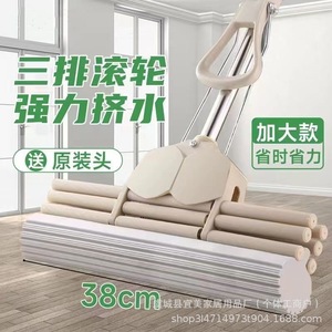 3列の水を絞って水を吸収するモップ、手を使わずに手を傷つけない怠け者用スポンジローラー、乾湿両用大型コットンヘッドモップ
