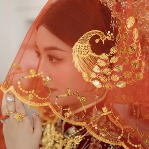 花嫁の結婚式の赤いヒジャブ半透明 2025 結婚式のベール中国の結婚式のベール Xiuhe スーツ赤