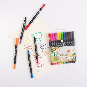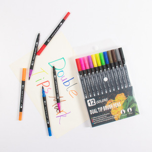 国境を越えた販売専用の両頭水彩ペン 12色ソフトヘッドセット 学生用絵画マーカーペン 文房具 クリエイティブ