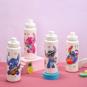 スターリー漫画プラスチックカップ、見栄えの良い、大容量、学生用ソリッドカラーの子供用ウォーターカップ、ハンドル付きポータブル大容量カップ
