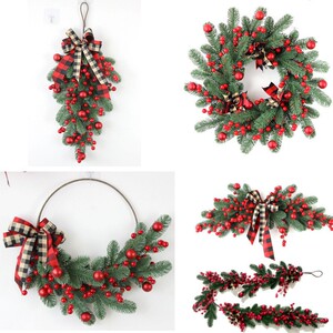 クリスマス PE レッドフルーツ籐サークルガーランドクリスマス装飾リボンガーランド 1.8m クリスマス籐ホリデードアフロント装飾