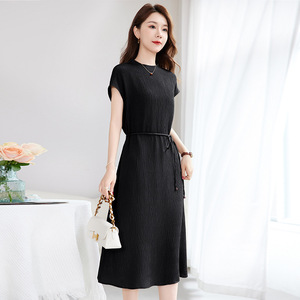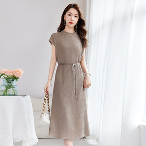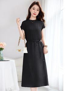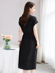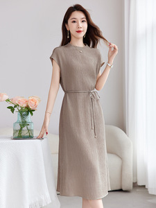 [マルベリーシルク Guanle シワ] シンプルで軽い高級レディース通勤気質夏ノースリーブシルクドレス女性 1103