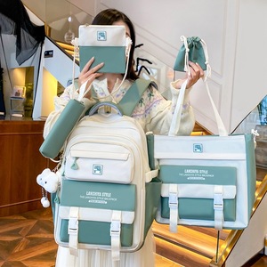 新学期シーズンのおすすめランドセル!韓国風ステッチカレッジスタイルバックパックキャンパスクラス5点セット大容量