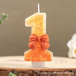 新品数字蜡烛可爱蝴蝶结创意周岁生日蛋糕装饰供跨境亚马逊希音