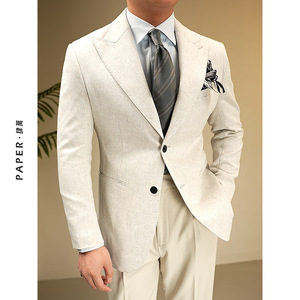 时尚春夏单排扣麻混纺西装套装商务休闲意式那不勒斯西服外套男