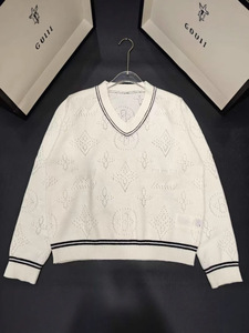 驴家南油高版本25春夏新款老花镂空V领长袖针织衫休闲上衣