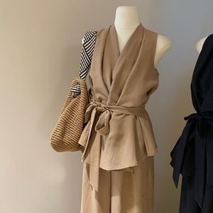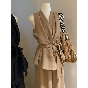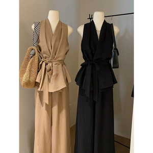 法式不规则V领交叉挂脖吊带背心+阔腿长裤女2025年夏季新款套装潮