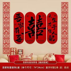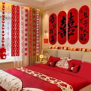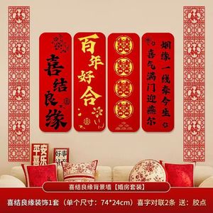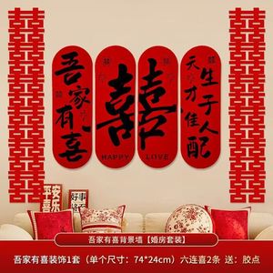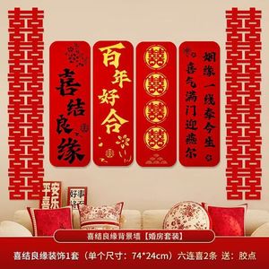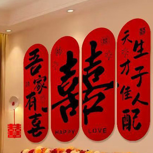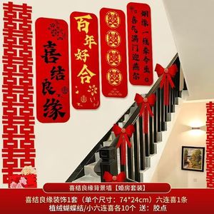婚房楼梯布置男方结婚客厅沙发背景墙贴装饰卧室床头喜字套装婚礼