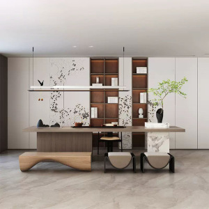 モダンなティーテーブルと椅子の組み合わせオフィス無垢材シンプルで軽い高級ハイエンドオールインワン大理石ガイドテーブル
