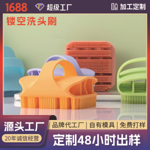 国境を越えた人気のマッサージシリコンシャンプーブラシ、在庫あり、ウェットとドライの両用クリーニングヘッドマッサージブラシ、ロゴ付き家庭用
