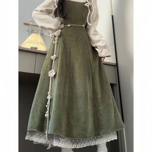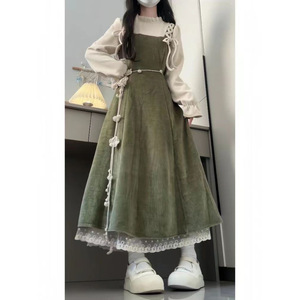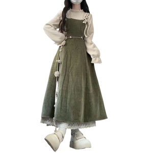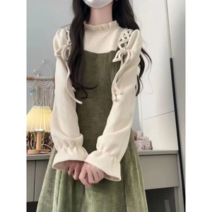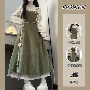 女性用スーツ 2025 秋韓国年齢軽減長袖ボトムシャツトップウエスト痩身サスペンダードレス 2 点セット