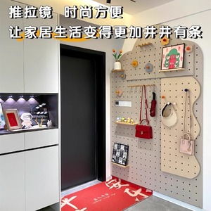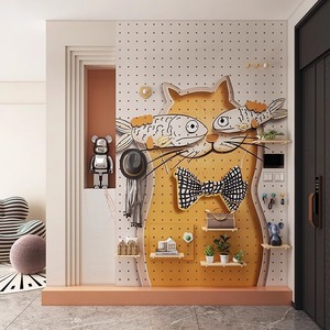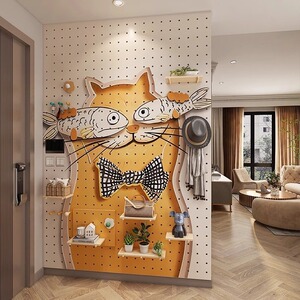 クリエイティブな無垢材パターンのホールボード収納ラック玄関ホールハンギングボードパーティション壁収納ラック