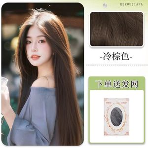 【コールドブラウン】前髪ありメカニズムロングストレートヘア+ヘアネット
