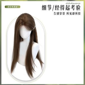フルウィッグ、シームレス、ミドルパート、ロングストレートヘア、ナチュラル、目に見えない、シームレスな人工毛、フルウィッグ
