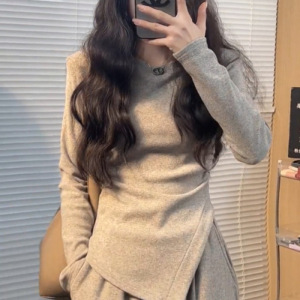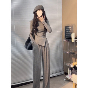 茉莉定-制巴黎周末秋冬修身显瘦百搭时尚套装不规则皱褶恤直筒裤
