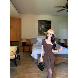 【ビンゴ】+シャヘ25春リボンフィッシュテールドレスレディースハイエンドスプライシングメッシュウエストとヒップカバー