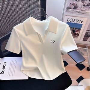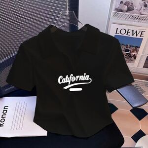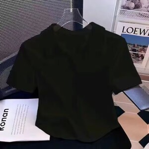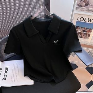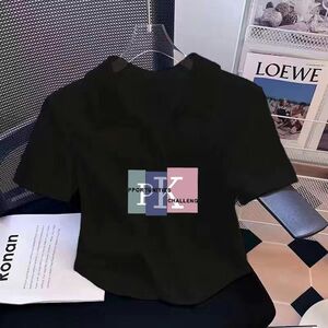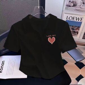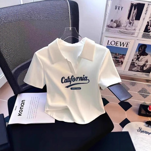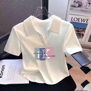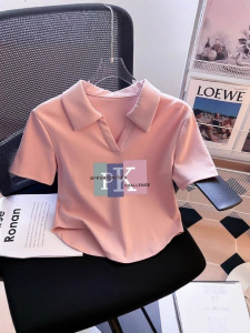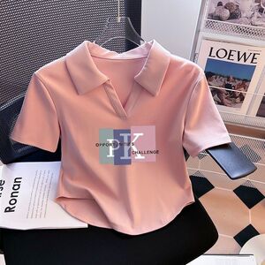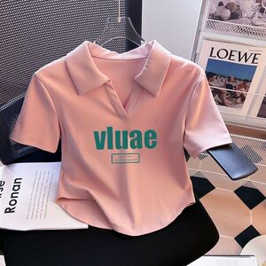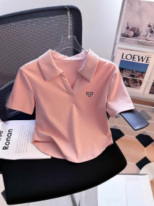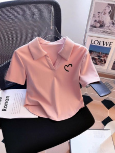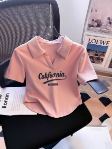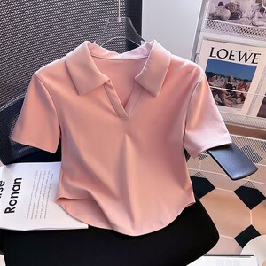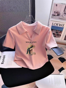 ピンク年齢軽減スリムフィット右肩プリント半袖 Tシャツ女性の夏の純粋な欲望ポロカラーホットガールショートトップ綿