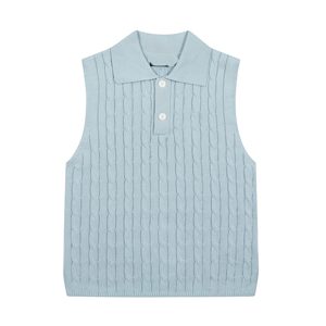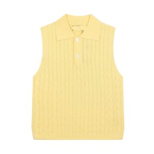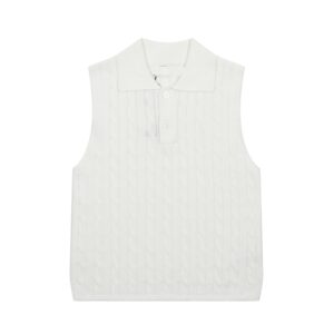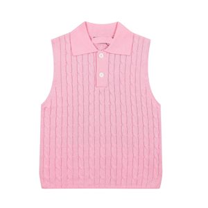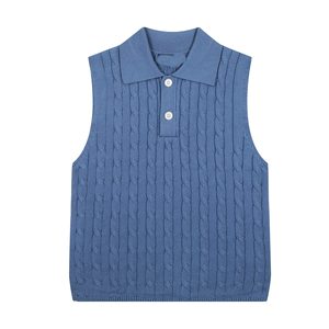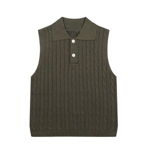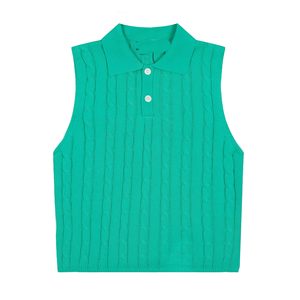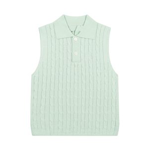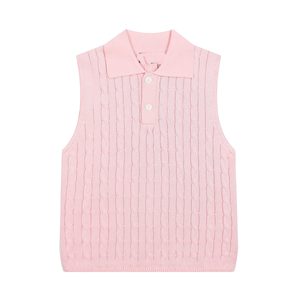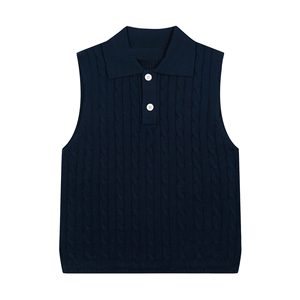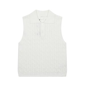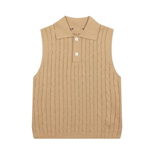 023 LF クラシックツイスト刺繍スモールラベルノースリーブベストポロカラーツーボタンニットベスト無地馬