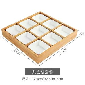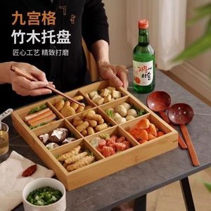 竹木零食小吃干果坚果围炉果盘盘煮茶火锅店分格餐盘盒九宫格托盘