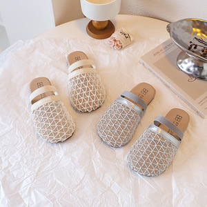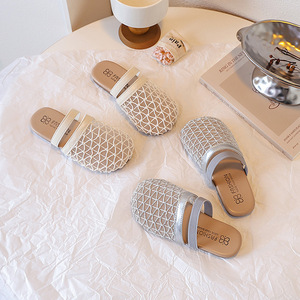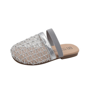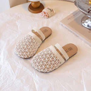 子供用メッシュ中空ソフトソールつま先ハーフスリッパ2025夏新作韓国風女の子フレンチビーチサンダル
