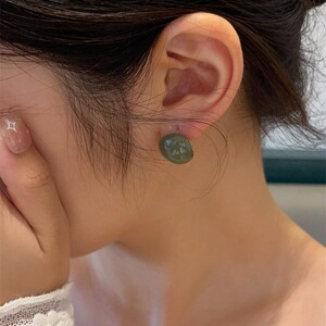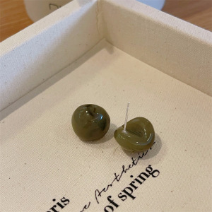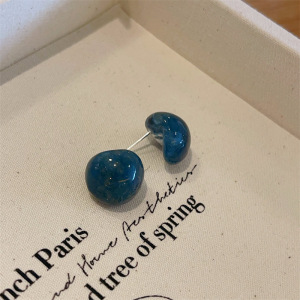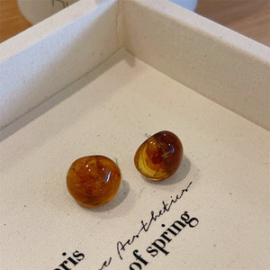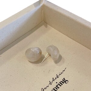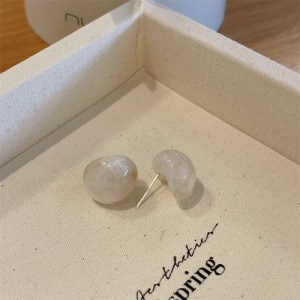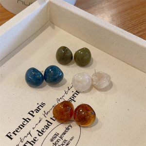 半透明レトロ四季カーブ樹脂イヤリングシルバー針半球ゼリーイヤリングシンプル通勤イヤリング