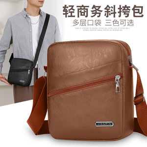 ファッションメンズPUレザービジネス大容量メンズクロスボディバックパックシンプルカジュアルトレンディメッセンジャーバッグ