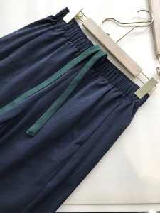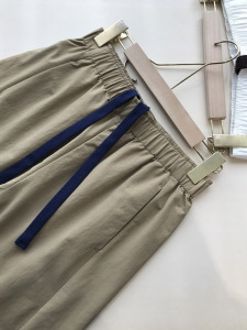 アクセント付きで中毒性あり〜呼吸するレンチングテンセル伸縮性ウエストストレートカジュアルパンツレディース夏新作