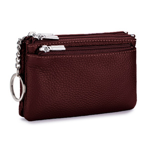新しい第一層牛革シンプルなレディースジッパー小銭入れ本革3ジッパー大容量収納袋コインバッグ