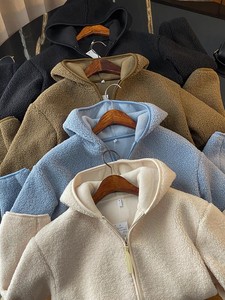 Xiaoyoujia!縁!日本のシンプルなソフトポーラーフリースカジュアルルーズフード付きジャケット女性の秋冬の新スタイル2025