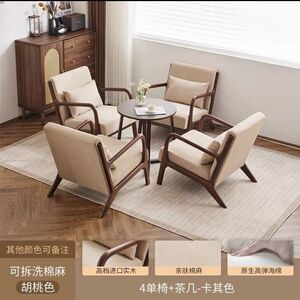 胡桃色2椅+茶几-卡其【可拆洗面料】