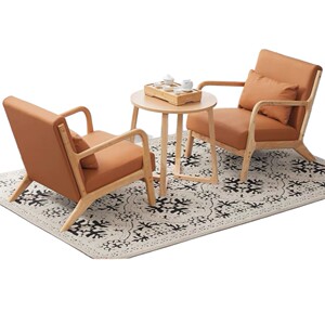 胡桃色2椅+茶几-橘红【免洗科技布】