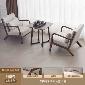 胡桃色2椅+茶几-浅灰【免洗科技布】