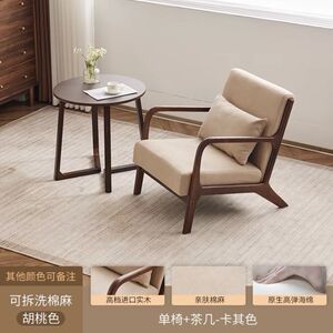 胡桃色2椅+茶几-米白【可拆洗面料】