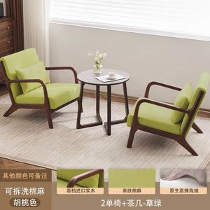 胡桃色2椅+茶几-绿色【可拆洗面料】