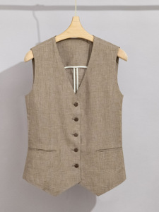 Xiaohe の同じスタイルのチェック柄リネンベストベスト夏ツーピースショーツ女性のハイエンドスリムジャケット女性の新しい