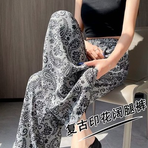 レトロジャカードワイドレッグパンツ女性のための 2025 夏の新しいスタイル怠惰なハイウエストルーズ痩身ストレートパンツイン