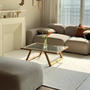 日本製無垢材透明強化ガラス小さなアパートホームリビングルームコーヒーテーブルシンプルモダンアートミラー小さなテーブル
