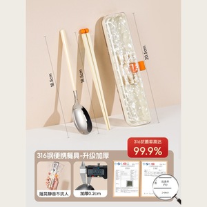 316 ステンレス鋼の箸とスプーンセット食器ポータブルテイクアウト収納ボックスオフィスワーカーと学生のための個人ボックス