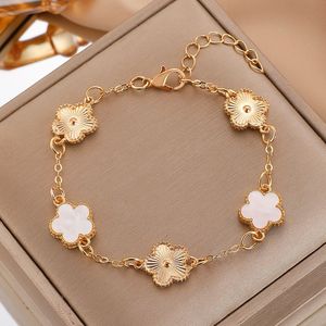 ヨーロッパとアメリカの国境を越えた人気の五葉のクローバーブレスレット、軽い高級感とハイエンドの五葉の花のブレスレット、女性用のシンプルなニッチハンドジュエリー