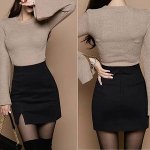 ヒップカバースカート、秋冬ショートスカート、レディースブラックハイウエストワンステップスカート、セクシータイトスカート、スリムフィットウールスカート