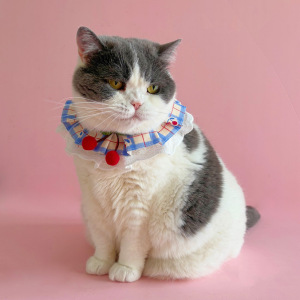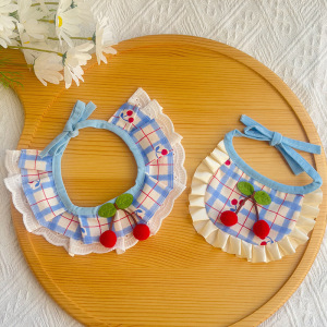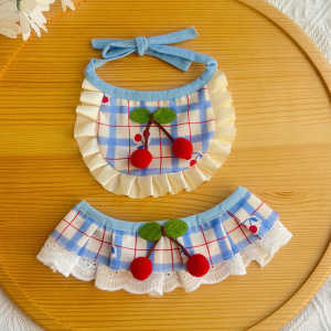 25 夏ペットよだれかけ犬唾液タオルかわいいチェリー猫よだれかけチェック柄よだれかけブルー装飾