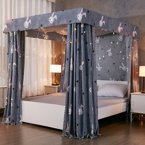 公主风床幔遮光防尘蚊帐落地加厚床帘家用卧室防风防隐私布帘支架