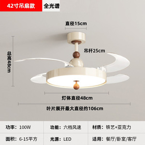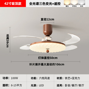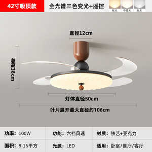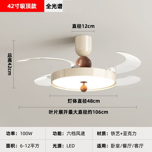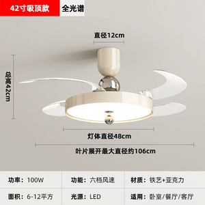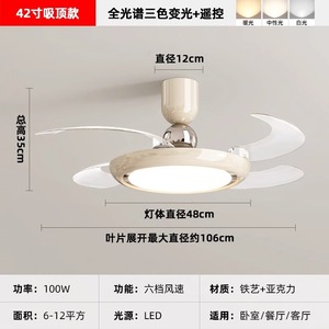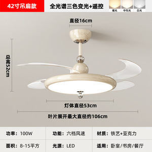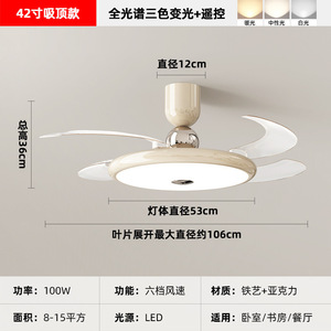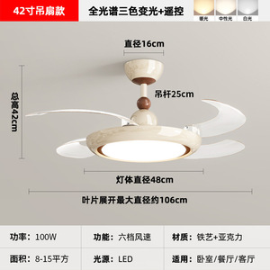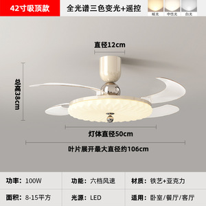 2025 新レストラン目に見えないファンライトクリームスタイル寝室ランプシーリングファンライトサイレントホームシャンデリアモダンシンプル