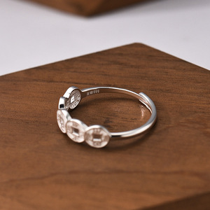 999 スターリングシルバーの幸運の銅コインリング、女性用、オープンリング、調節可能、男性と女性への幸運と十分な人差し指のギフト