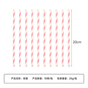 ピンクストライプ紙ストロー 10本/パック