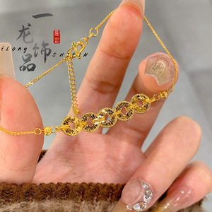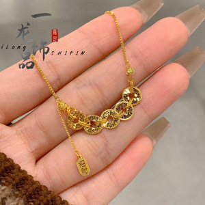サンドゴールドジュエリーブロークンアイスアイス五帝コインネックレスライト高級ハイエンド富が流れるフラッシュ五帝コインブレスレット女性用