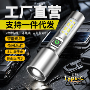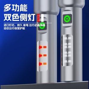 ホワイトレーザー合金懐中電灯のズームバージョン[赤と白の2色サイドライト+Type-C急速充電]