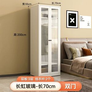 両開きドアワードローブ - 幅0.7mの長虹ガラスドア、スチールキャビネット、ウォームホワイト、ホルムアルデヒドフリー + 2ドア + 組み立て済み